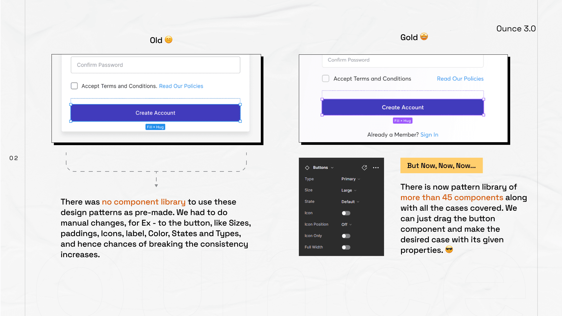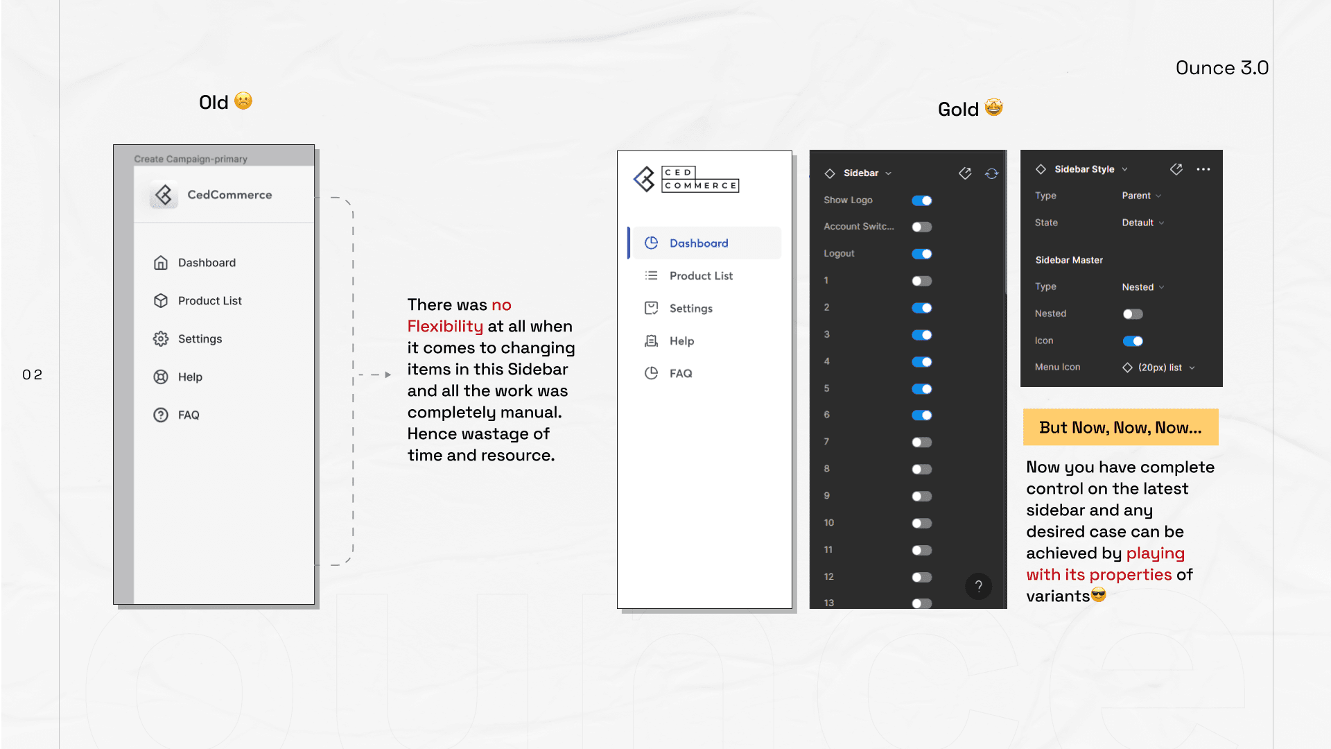 In Cedcommerce, I worked on the Design System which is version 3 (Final). The first and second versions of it messed up, there are not any properties and component variants followed correcting, detached components, lackness of important components. I feel that there needs to be a lot of improvement.
